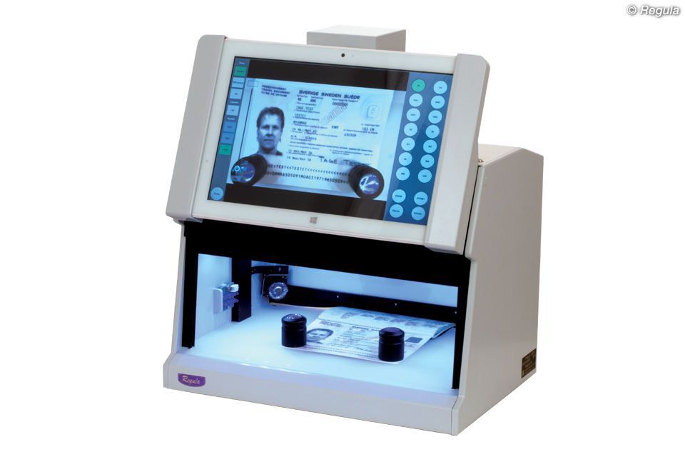 Оборудован модулем для считывания бесконтактных идентификационных микросхем. Опционально комплектуется встроенной информационно-справочной системой для сравнения исследуемого документа с эталоном из базы данных.