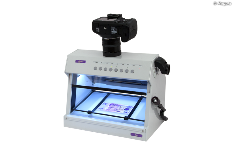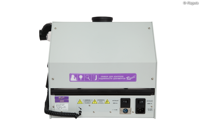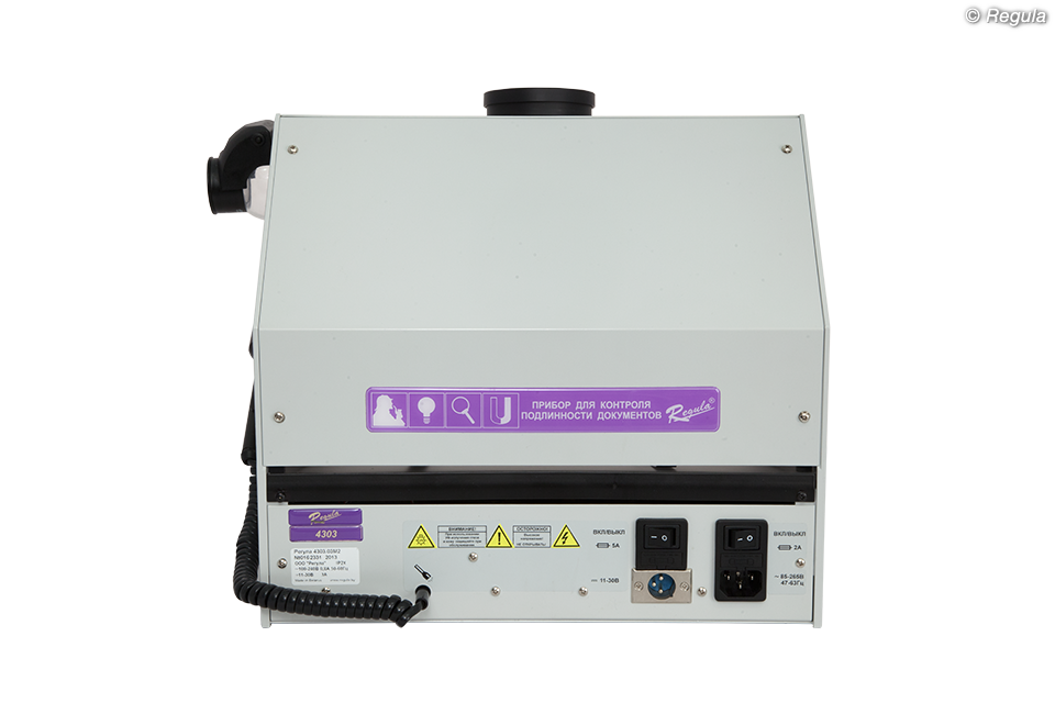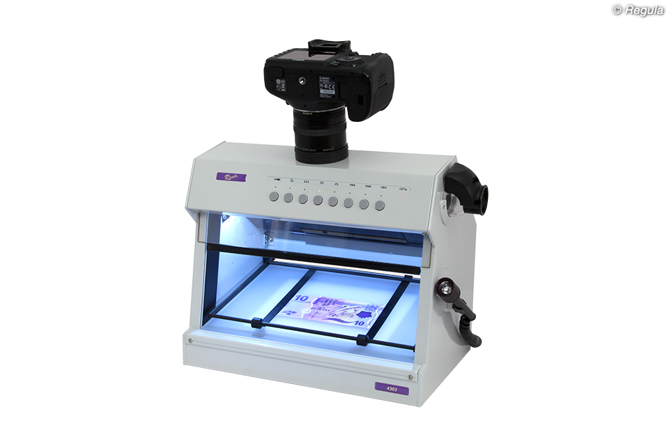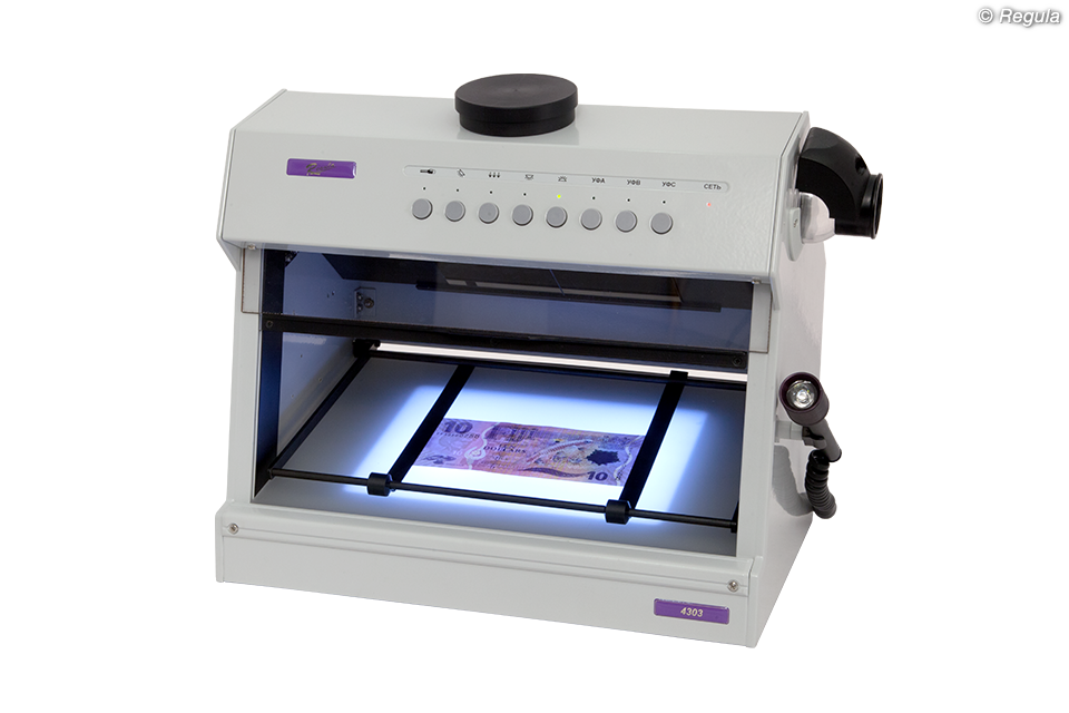 • Получение изображений и сохранение результатов исследования для моделей «Регула» 4303.ХХМ при установке цифровой камеры, которая не входит в комплект поставки: - Canon PowerShot G10, G11, G12 с адаптером LA-DC58K - Canon PowerShot G15 с адаптером LA-DC58L • Исследования на уровнях: - защиты основы документа: • облачность бумаги; водяной знак; защитные волокна; планшетки и плашки; конфетти; защитные нити и полосы безопасности; голограмма, кинеграмма; тиснение фольгой; покрытия с поляризационным эффектом; все разновидности окон; прозрачное лаковое покрытие; теневое изображение; сквозное отверстие и др. - полиграфической защиты: • глубокая металлографская печать: тексты; гильоширные рамки, розетки и виньетки, микротекст, все виды скрытых и муаровых изображений; метки для людей с ослабленным зрением; бескрасочное тиснение; элементы защиты, выполненные цветопеременной краской, в том числе с тиснением и скрытыми изображениями и др. • высокая печать: серийный номер; тексты; штрихкод и др. • плоская печать: Орловская печать, все разновидности офсета, в том числе с ирисовым раскатом: тексты; все виды микропечати и микротекстов, муаровые узоры; все виды фоновых сеток и антикопировальных средств защиты и иные средства защиты на уровне полиграфии трафаретная печать: элементы защиты с оптически переменными эффектами, различные изображения и тексты и др. • совмещаемые и совмещающиеся изображения и иные элементы и средства защиты • перфорация - физико-химической защиты: • все виды ультрафиолетовой люминесценции на разных длинах волн - комплексных средств защиты: • ретрорефлективная защита • специальные полимерные покрытия защитных ламинатов • все виды металлизированных покрытий • лазерные гравировки по пластику и др. • Дополнительные исследования: - изменений подчисткой, травлением и смыванием - следов технической подготовки при подделке подписи - залитых, замазанных, зачеркнутых записей, текстов, изображений - механических повреждений документов: надрезов, надрывов, сгибов и др.