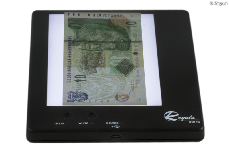 Компактное устройство в корпусе из пластмассы. Может использоваться в мобильном (питание от аккумуляторов) и стационарном (питание от порта компьютера USB 2.0) вариантах. Источники света переключаются на верхней панели прибора или с помощью программного обеспечения «Regula Forensic Studio» при работе с компьютером.